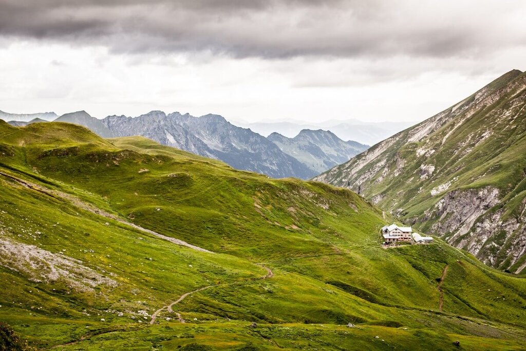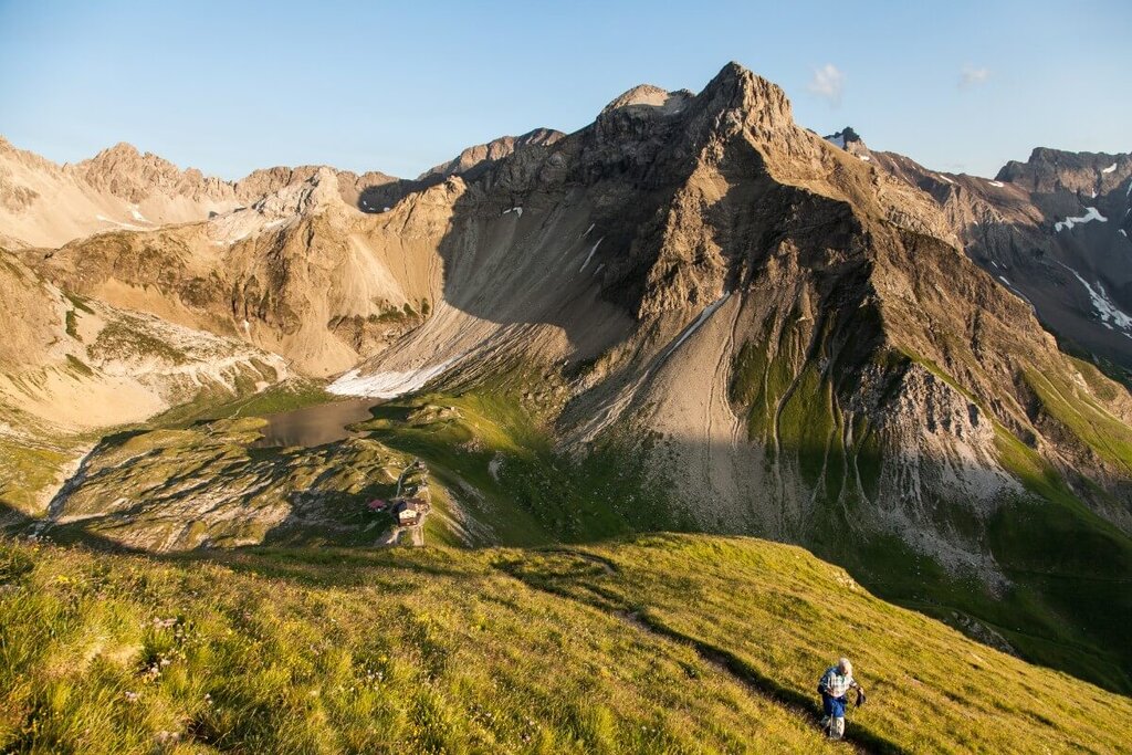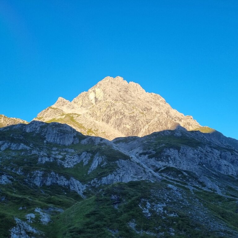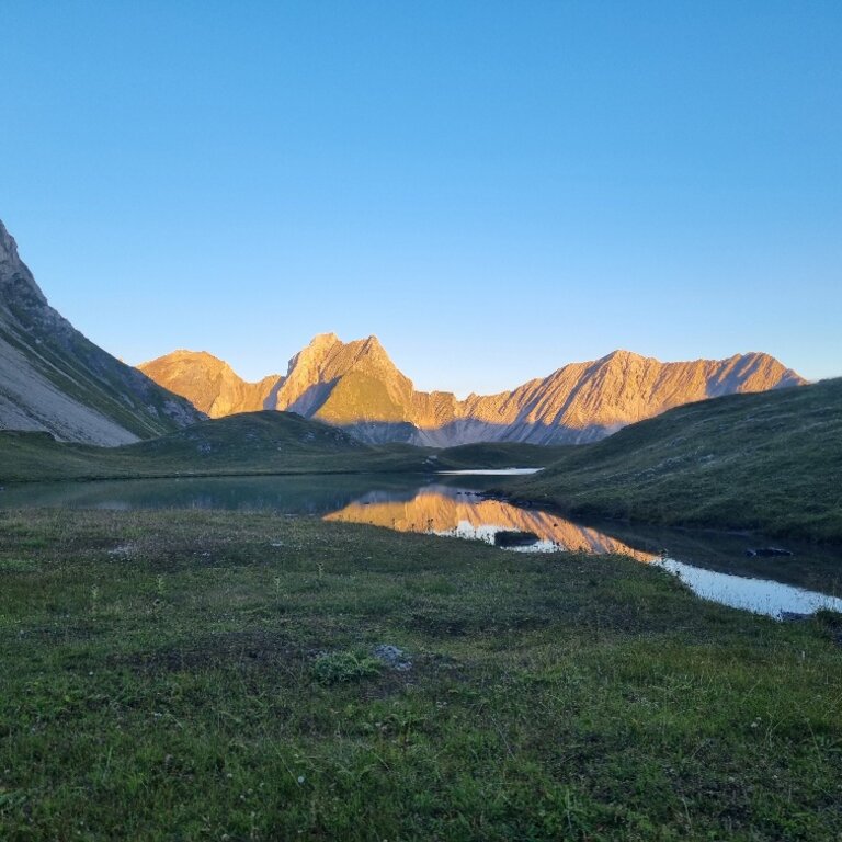 <Nach dem Frühstück starten wir von der Kemptner Hütte über das Mädelejoch ( 1.973 m) in Richtung Roßgumpenalm (1.329 m). Weiter geht es durch das Höhenbachtal vorbei am Simmswasserfall nach Holzgau (1.114 m) im Lechtal. Nach einer ausgiebigen Rast in Holzgau bringt uns das Taxi nach Madau, Aufstieg vorbei an der Alplihütte (2.516 m) zur Memminger Hütte.