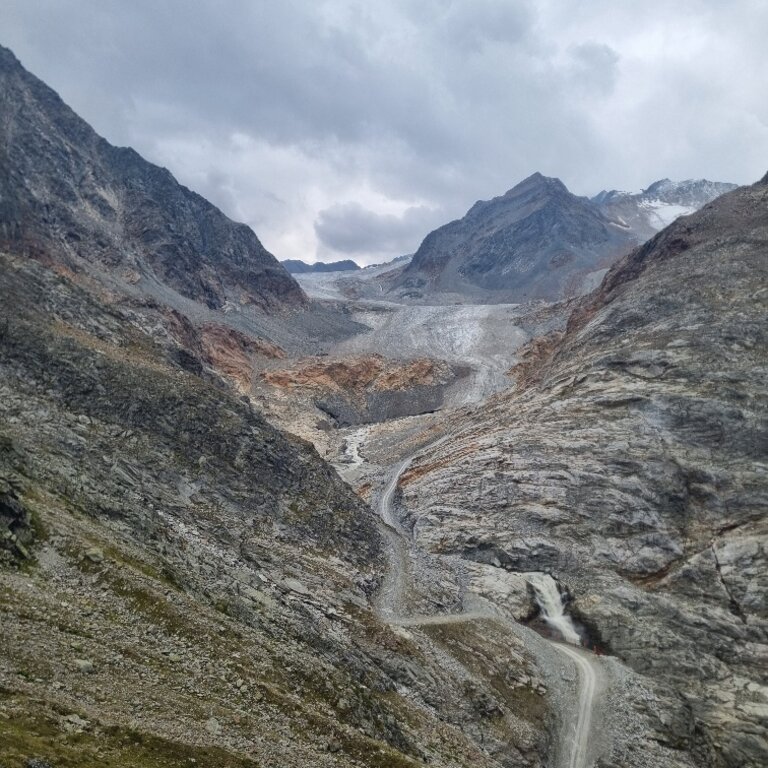 <Zeitig geht es heute über das Pitztaler Jöchl (2.990 m) hinüber ins Ötztal, wo wir bis zur Bushaltestelle am Rettenbachferner (2.660 m) wandern. Per Bus geht es auf der Gletscherstraße weiter zum Tiefenbachferner (2.750 m)., wo wir unsere Wanderung entlang des Höhenwegs nach Vent (1.895 m) fortsetzen. Nach einer kurzen Rast geht es hinauf zur Martin-Busch-Hütte (2.501 m). -