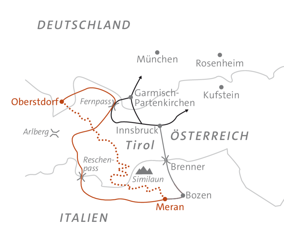 Der gemeinsame Rücktransfer von Meran wird am 7. Reisetag um ca. 9:00 Uhr starten. Die geplante Ankunft in Oberstdorf wird um ca. 14:30 Uhr sein! Bitte beachte, dass es aufgrund der jeweiligen Verkehrssituation zu Verspätungen bzw. Routenänderungen kommen kann!