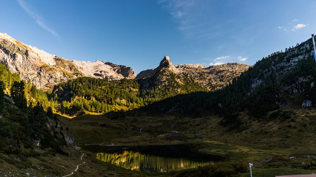 <Unsere heutige Etappe führt uns durch eine vielgestaltige und spektakuläre Gebirgslandschaft. Durch das Steinerne Meer wandern wir vorbei an Schwarzsee und Grünsee, ehe wir den Funtensee und somit das Kärlinger Haus erreichen.