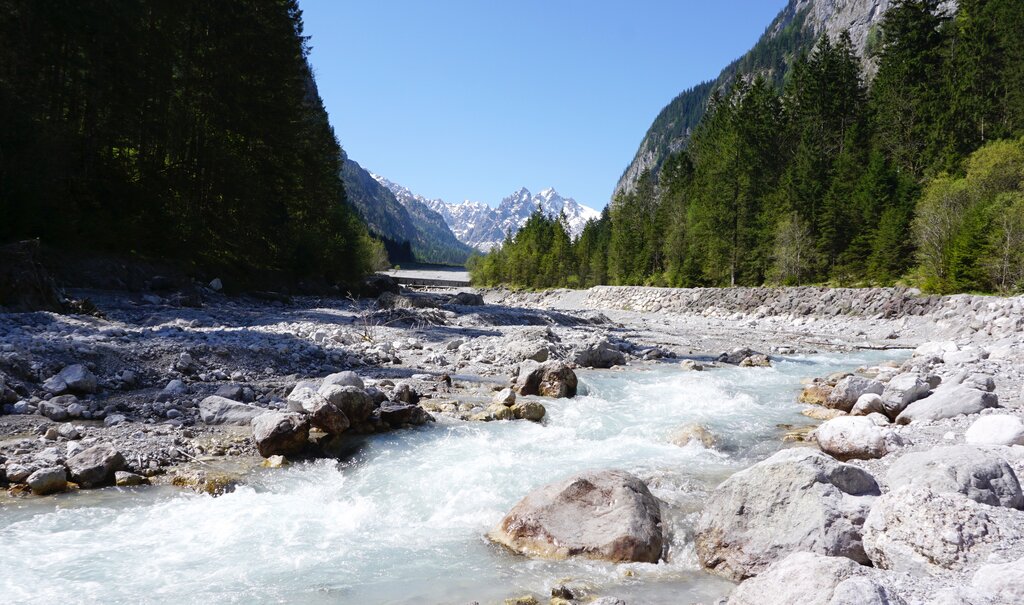 Hinein in die Felsszenerie des Wimbachtals