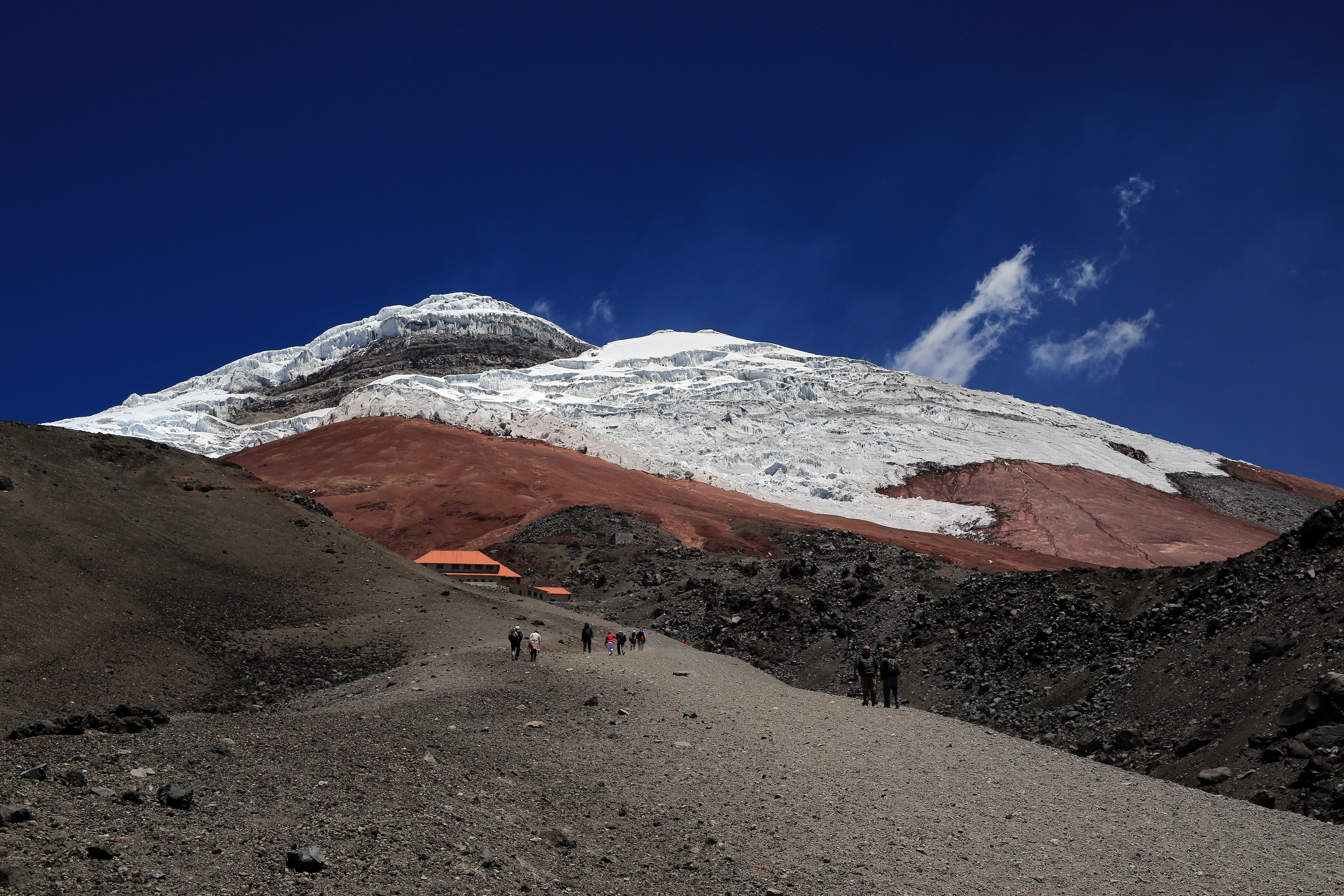 <Nach dem Frühstück verlassen Sie Quito und fahren in den Süden zum Cotopaxi-Nationalpark. Sie besuchen den Limpiopungo-See, der in den Hochlagen des Parks liegt. Hier haben Sie einen spektakulären Blick auf den riesigen Kegel des Cotopaxi-Vulkans. Der Limpiopungo-See bietet eine Vielzahl von Vögeln und gelegentlich sogar wilde Pferde. Ein kurzer Spaziergang rund um den See ermöglicht es Ihnen, die andine Pflanzen- und Tierwelt entlang des Weges zu bewundern. Wenn die Zeit es erlaubt und die Höhe Sie nicht beeinträchtigt, können Sie bis zum José-Rivas-Schutzhaus auf 4800 m wandern und den spektakulären Ausblick genießen.