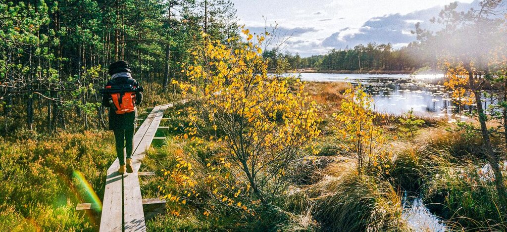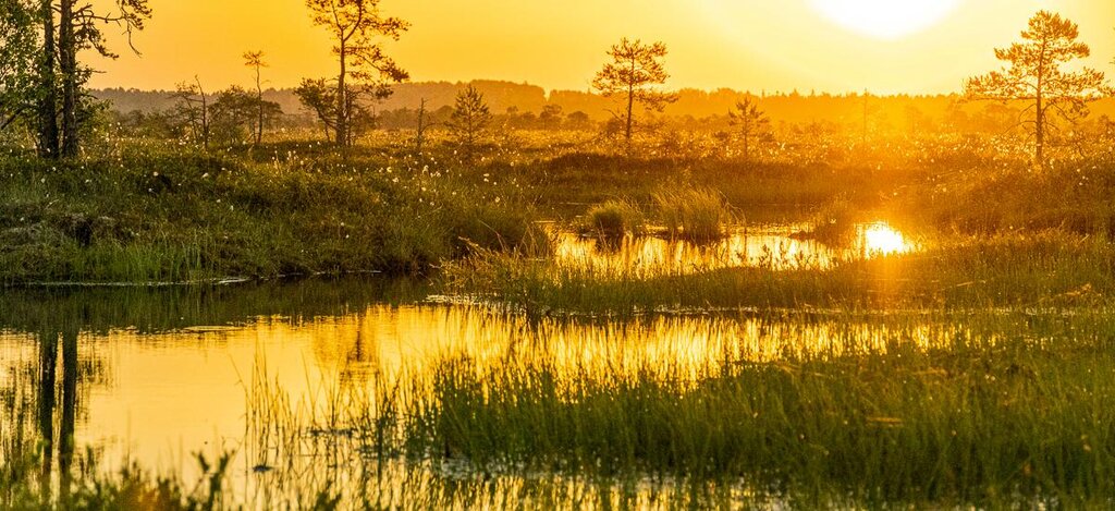 <Der Name Soomaa bedeutet Moorland und das sagt ganz genau, worum es in diesem europaweit größten Regenmoor-Nationalpark geht. Die Landschaft mit riesigen Hochmooren, nassen Wäldern und ursprünglichen und stark mäandernden Flüssen war in der Vergangenheit zu kompliziert für eine Kultivierung. Nach Ende des Kalten Krieges wurde der Soomaa-Nationalpark gegründet, um diese wertvolle Natur zu schützen. Wir wollen das alles hautnah und abenteuerlich erleben. Dafür startest du am Vormittag zu einer Kanutour auf einem Naturfluss, an dessen Ufer riesige Eichen, uralte Zitterpappeln und Birken wachsen. Zwischen den Bäumen kannst du immer wieder Biberburgen und Gänge erspähen. Am Nachmittag wartet im Soomaa-Nationalpark ein besonderes Abenteuer auf dich. Du wanderst in diesem Hochmoor-Nationalpark mit Moorschuhen und bestaunst dabei zahlreiche Moorpflanzen, Beeren und Pilze. Das Hochmoor besteht zu etwa 95 Prozent aus Wasser und das kannst du gleich erfühlen, wenn du mit Moorschuhen auf weichem und feuchtem Boden gehst. Unterwegs siehst du vielleicht auch Birkhühner oder Bruchwasserläufer. Außer dem Bodenwasser gibt es im Moor übrigens auch sogenannte Mooraugen, kleine Seen, wo das Wasser bräunlich und extrem süß sowie sehr sauber ist. Hier solltest du unbedingt baden gehen. Das erst etwas unheimlich wirkende dunkle Wasser ist weich und in ihm zu schwimmen ist ein unvergessliches Erlebnis. Zum Abschluss kannst du dich auf einen Saunaabend freuen. Die Saunakultur gilt in Finnland als fester Bestandteil des Lebens und wurde daher zum immateriellen Kulturerbe der UNESCO erklärt. Nach einem langen Tag in der Natur gibt es nichts Besseres als ein gesundes Peeling mit Birkenzweigen.