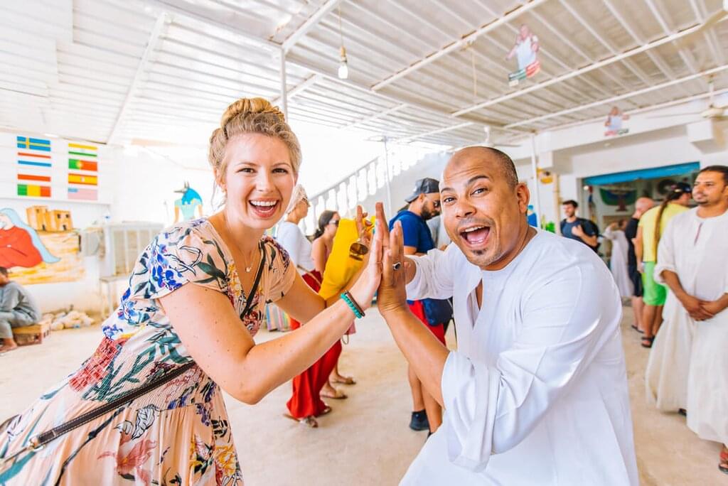 <Heute Morgen verlässt du Wadi Rum und machst dich auf den Weg nach Dahab. Du fährst nach Akaba, verabschiedest dich dann von deinem jordanischen Reiseleiter und setzt mit der Fähre nach Taba über. Bei deiner Ankunft wirst du von deinem ägyptischen Betreuer in Empfang genommen und fährst in den entspannten Ferienort Dahab, wo du die nächsten zwei Nächte verbringen wirst. Dahab, was auf Arabisch "Gold" bedeutet, hat sich dank der hervorragenden Bedingungen für Aktivitäten wie Tauchen, Windsurfen und Klettern von einem beduinischen Fischerdorf zu einer beliebten Touristenstadt entwickelt. Dennoch hat die Stadt nichts von ihrer Authentizität und ihrem unaufdringlichen Charme verloren, der seit den 1970er Jahren Besucher anzieht. Der Rest des Tages steht dir zur freien Verfügung, um durch die Cafés zu schlendern, frische Meeresfrüchte zu finden oder im Roten Meer zu schnorcheln. Dahab ist bekannt für seine Drop-Offs - spektakuläre Korallenriffs, die in die weiten blauen Tiefen des Ozeans abtauchen. Es gibt auch viele Bars und Restaurants, in denen du dich zurücklehnen und gutes lokales Essen und etwas Sheesha genießen kannst.