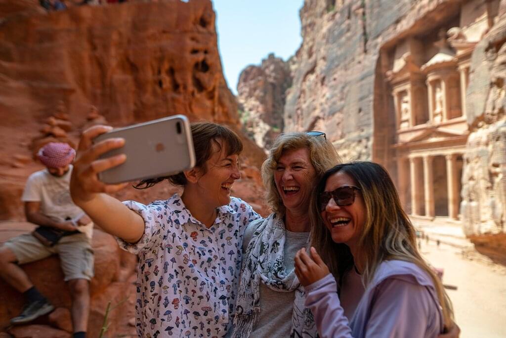 <Heute erkundest du Petra - das Juwel Jordaniens, die verlorene Stadt der Nabatäer und eines der Sieben Weltwunder! Quetsche dich durch einen schmalen Pfad, den Siq, bis du den großen Eingang der Schatzkammer erreichst. Bestaune die komplizierten Schnitzereien und verbringe den Nachmittag damit, die Stätte in deinem eigenen Tempo zu erkunden. Es gibt die alte Römerstraße, andere Tempel und alte Gräber sowie das in den Fels gehauene Amphitheater. Wenn du etwas abenteuerlustiger bist, kannst du eine anspruchsvolle Wanderung über eine Treppe zu dem kleineren, aber nicht weniger beeindruckenden Kloster unternehmen, die etwa eine Stunde dauert. Wenn du wieder in deiner Unterkunft angekommen bist, kannst du dich in einem traditionellen Badehaus von einem Tag voller Sehenswürdigkeiten erholen.