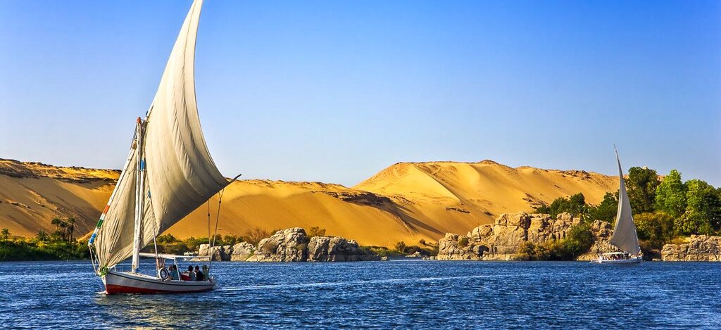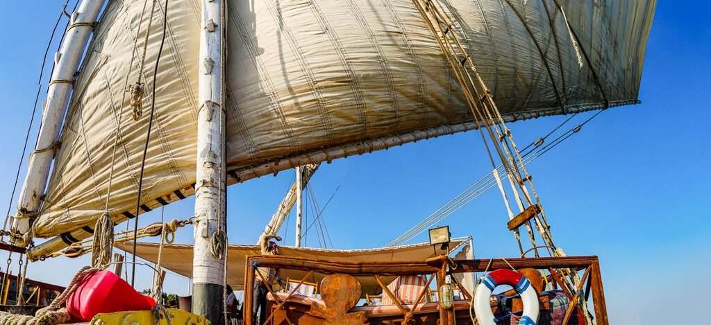 <Am Vormittag erkundest du Ägyptens größte und vermutlich imponierendste Tempelanlage, die Tempelstadt von Karnak. Die gigantische Kultstätte wurde zu Ehren des Sonnengottes Amun-Re erbaut und über rund zwei Jahrtausende von vielen Pharaonen stetig erweitert, um ihm seinen gebührenden Tribut zu zollen. Die ältesten Bauten sind etwa 4.000 Jahre alt. Persönlichkeiten wie Sethos I. und sein Sohn Ramses II. ließen beispielsweise die monumentale Säulenhalle zwischen dem ersten und zweiten Pylonen erbauen. Nun ist es an der Zeit, die gesammelten Eindrücke der letzten Tage erst einmal zu verdauen. Denn ab jetzt entschleunigen wir dein Reisetempo, und zwar zu Wasser. Eine der klassischsten Arten, den Nil zu befahren, bieten die traditionsreichen Dahabiya. Erinnern dich diese kleinen Segelschiffe vielleicht an die Frachtkähne in nahezu sämtlichen Reliefzeichnungen? Kein Wunder, denn diese Art von Schiffen fährt schon seit Tausenden von Jahren auf dem Fluss aller Flüsse und der wichtigsten Verkehrsader des Landes. Mache es dir auf dem Sonnendeck bequem – in den kommenden Tagen segelst du gemächlich stromaufwärts und lässt den Wind das Tempo bis nach Assuan bestimmen. Unterwegs wirst du immer wieder anlegen, um die Uferregionen zu erkunden.