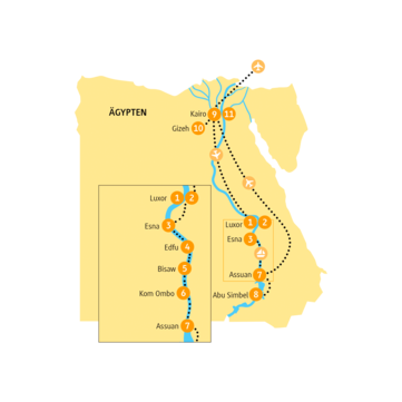 - 10 Übernachtungen in Hotels und Gästehäusern sowie auf einer traditionellen Dahabiya