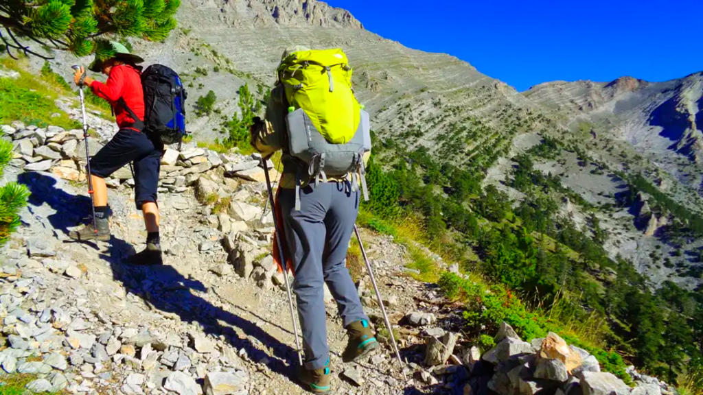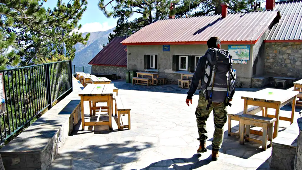 <Gestärkt fahren wir nach dem Frühstück wieder hinauf nach Prionia. Hier schultern wir unsere Rucksäcke und machen uns über den Fernwanderweg E4 auf zur Hütte Spylios Agapitos – unserem heutiges Etappenziel auf 2.100 m. Auf einem gut ausgetretenen Maultierpfad wandern wir durch alte Baumbestände und über blumenreiche Wiesenhänge bergauf. Die Hütte liegt sehr schön auf einem Felssporn unterhalb der Gipfel. Am Kaminfeuer, mit einem schmackhaften, kräftigen Abendessen und der einen oder anderen Legende aus der griechischen Götterwelt lassen wir den Tag geruhsam ausklingen. -
