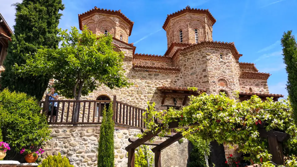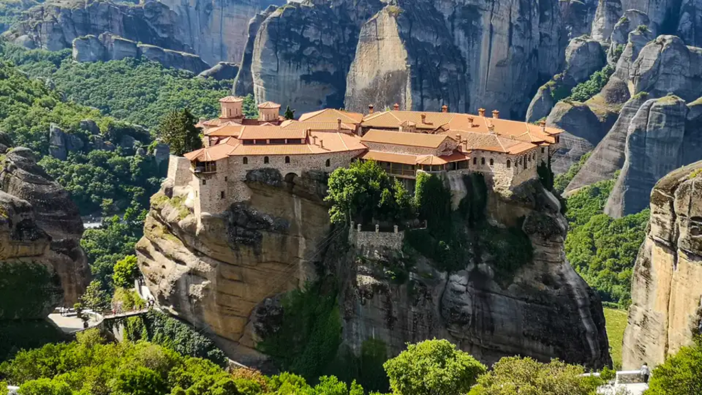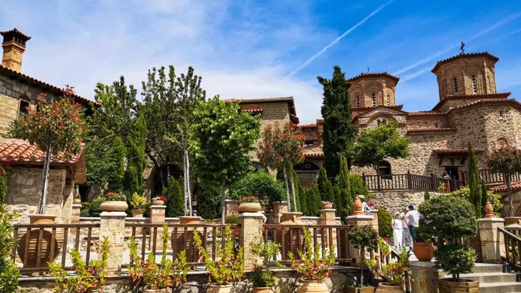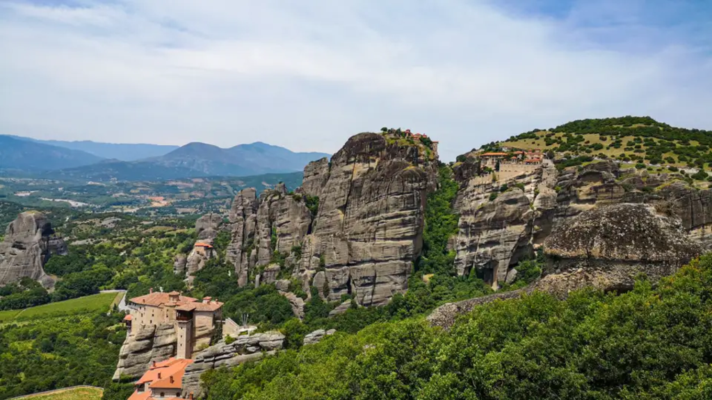 <Flug nach Thessaloniki. Hier werden wir von unserer Reiseleitung begrüßt, dann geht es weiter in Richtung der Meteora Klöster. Der Anblick ist überwältigend:Vor dem Hintergrund des Pindos-Massivs ragen die gewaltigen Felstürme fast senkrecht aus der grünen Ebene empor. Und obenauf thronen die berühmten Klöster! Ganz in der Nähe beziehen wir unsere Zimmer und treffen uns anschließend zum ersten gemeinsamen Abendessen. -