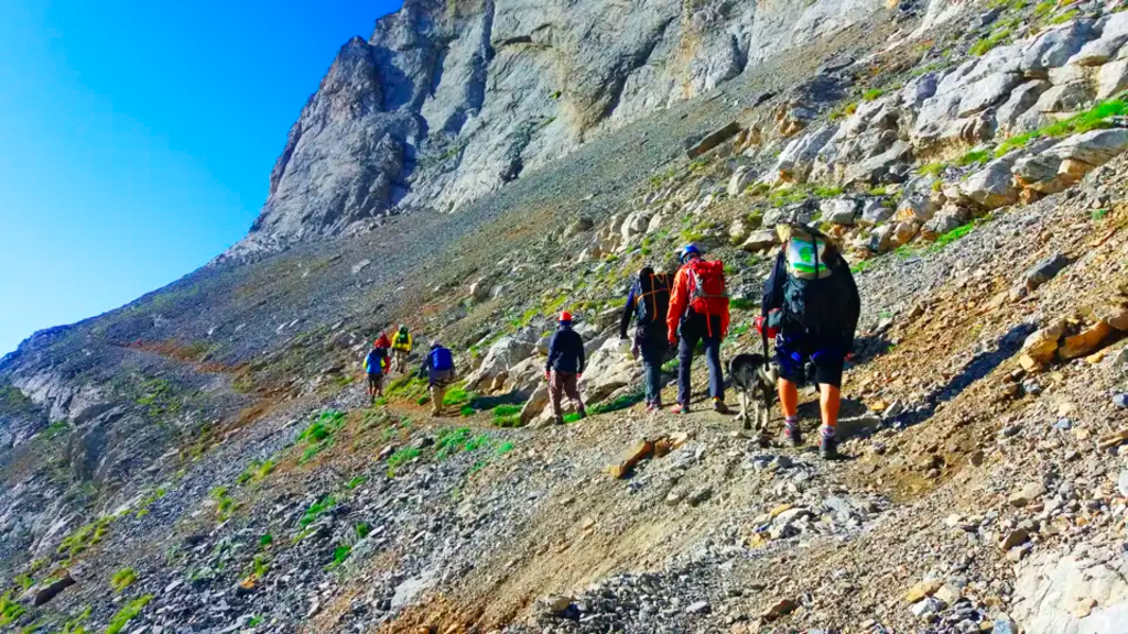 <Wenn der Wettergott uns hold ist, nehmen wir heute die Gipfel des Olymp in Angriff. Im Morgengrauen brechen wir auf und folgen dem gewundenen Pfad des E4 bergauf. Schon bald befinden wir uns über der Baumgrenze und mitten im Olymp-Massiv. Durch eine karge Fels- und Gerölllandschaft steigen wir weiter auf und erreichen schließlich den Gipfel Skala (2.866 m) und von dort über einen schmalen Grat den Gipfel Skolio (2.912 m). Nach einer Gipfelrast wandern wir über das Plateau der Musen (2.760 m) zur Christos Kakalos-Hütte, wo wir heute übernachten. Hier stoßen wir, wenn Zeus uns gnädig war, auf den erfolgreichen Gipfelsturm an.Sollte am Plateau der Musen noch Schnee liegen (v.a. bei den ersten Terminen möglich), übernachten wir zwei Mal in der Berghütte Spylios Agapitos. In diesem Fall steigen wir an Tag 6 wieder auf dem bekannten Weg nach Prionia ab. -