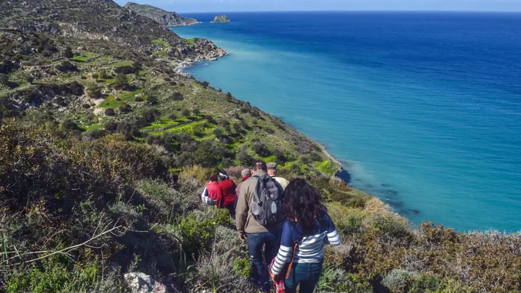 <Wir verlassen Kormacit und fahren nach Geçitköy. Unsere heutige Wanderung startet mit einem steilen Aufstieg. Oben angekommen folgen wir unserem Weg entlang der ersten Hänge des Besparmak-Gebirges. Dabei genießen wir den Blick auf das Wasserreservoir des Geçitköy-Damms, welches Lebensraum für eine Vielzahl von Vogelarten bietet. Enge Ziegenpfade führen uns durch Pinienwälder, bis wir die Ruinen des Sinai-Klosters erreichen. Wann dieses wohl erbaut wurde? Wir setzen unseren Weg fort, bis wir das Dorf Lapta erreichen, wo unsere Wanderung endet. Im März und Oktober enden wir bereits 2 km vor Lapta in Karsiyaka. Unser Bus fährt uns das letzte Stück bis nach Kyrenia zu unserer neuen Unterkunft., Die ersten 6 km der Wanderung, welche den anstrengenden Aufstieg über 500 m inkludieren, können bei Wunsch ausgelassen werden. Der Bus bringt Sie zum Anschlusspunkt bei Kozan, wo Sie wieder auf die Gruppe treffen. -