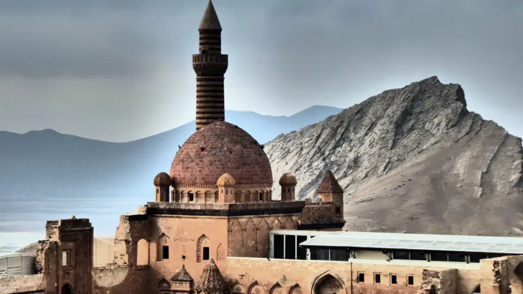 <Am Vormittag setzen wir über zur Insel Akdamar im Van-See und besuchen die Heiligkreuzkirche. Im Anschluss fahren wir entlang des Van-Sees und durch vulkanisches Gebiet Richtung Dogubeyazit nahe der iranischen Grenze. Bereits kurz vor unserem heutigen Ziel taucht der Ararat majestätisch vor uns auf. In Dogubeyazit besichtigen wir den Ishak Pasa Sarayi - eine Mischung aus Bergfestung und orientalischem Lustschloss. Danach beziehen wir unsere Zimmer und treffen uns zum Abendessen wieder. -
