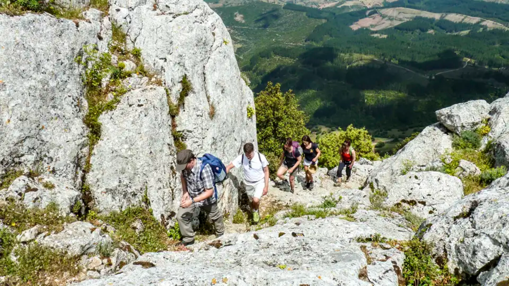 <Mit dem Kleinbus fahren wir zum Monte Albo, einem wilden Kalksteinmassiv nördlich des Supramonte. Unsere Wanderung führt uns zunächst durch dichte Wälder und später über weitläufige Hochflächen und Felsplatten hinauf auf die Punta Catirina (1.127 m), eine der höchsten Spitzen des Massivs. Nach einer Pause steigen wir wieder hinab zu unserem Ausgangspunkt und fahren zurück nach Cala Gonone. -