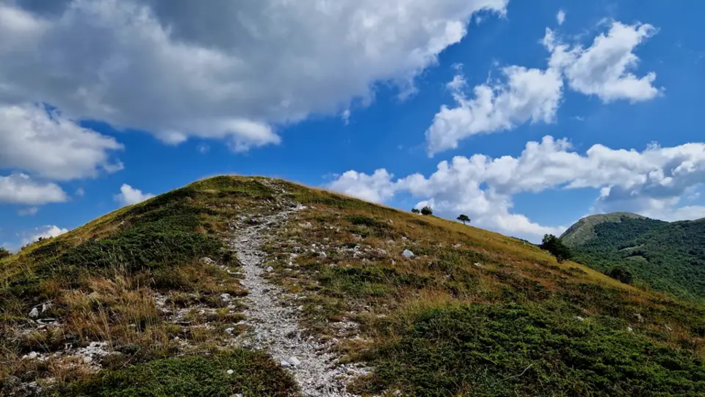 Wanderung im Sirente Velino Regionalpark mit Blick auf die Fuciner Hochebene