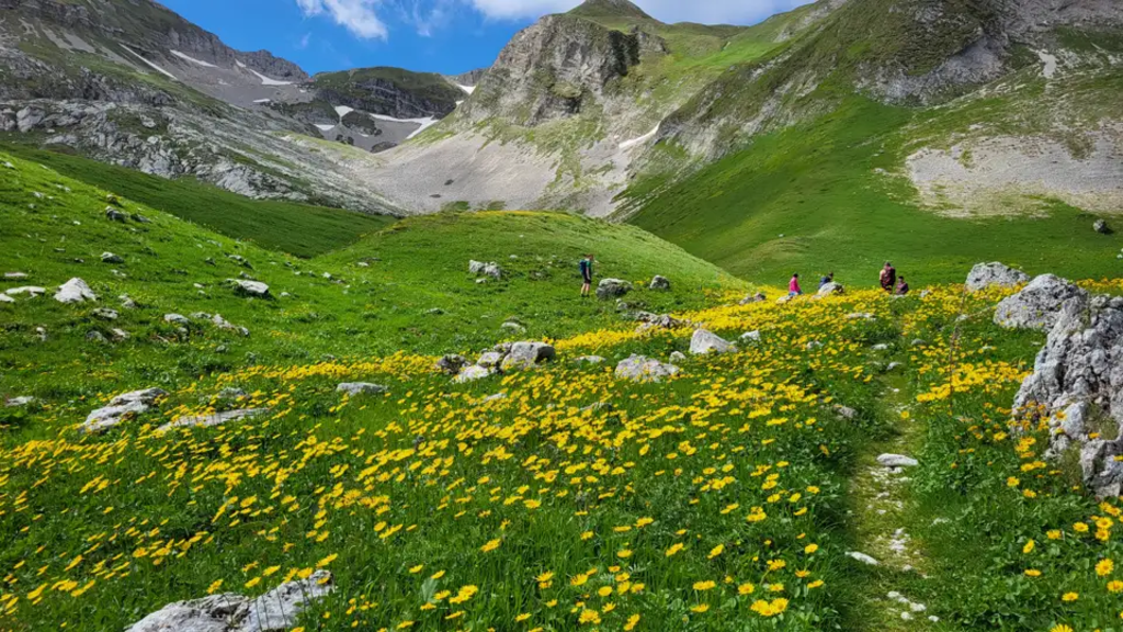 <Für unsere erste Wanderung fahren wir nach dem Frühstück durch ein enges Tal bis in das auf 945 m hoch gelegene Bergdorf Foce. Unser heutiges Ziel ist der in beeindruckender Bergkulisse gelegene Pilatus See. Umringt wird der ehemalige Gletschersee von den Berggipfeln des Monte Vettore (2.476 m), Cima del Redentore (2.449 m), Cima del Lago (2.422 m) und des Pizzo del Diavolo (2.410 m). Der Weg zum Pilatus See verläuft auf gut ausgetretenen Pfaden und der Anstieg führt uns stetig und sanft hinauf. Es gibt das Gerücht, dass der smaragdgrüne See eine magische Anziehungskraft hat. Was es damit auf sich hat, wird uns Giovanni natürlich erzählen. Vielleicht haben wir Glück und sehen am Seeufer eine sehr seltene Krebsart, die sich seit Jahrtausenden hier oben von Jahr zu Jahr weiterentwickelt. Wieder am Bus angekommen werden wir zurück nach Montemonaco gebracht. -