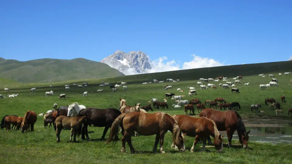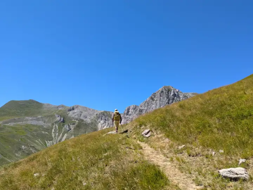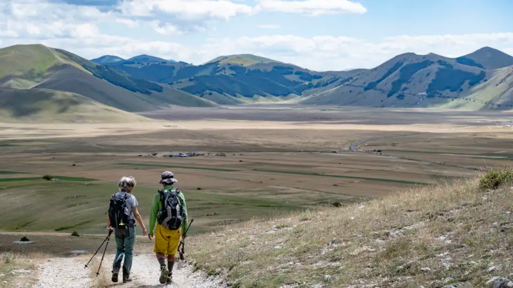 <Heute wollen wir hoch hinaus: Wir besteigen den Monte Vettore (2.476 m), den höchsten Berg der Marken. An der Gabelung Forca die Presta (1.534 m) parken wir den Kleinbus und schnüren unsere Wanderschuhe. Langsam aber stetig steigen wir auf zum Gipfel. Oben werden wir mit einem wunderschönen Panorama auf die höchsten Berge der Apenninen und auf den Pilatussee unter uns belohnt. Nach einer verdienten Gipfelrast steigen wir auf gleichem Wege wieder ab und fahren zurück in unser Hotel. -