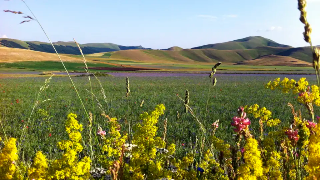 <Nach einer kurzen Fahrt erreichen wir das Bergdorf Foce (960 m), den Ausgangspunkt für unsere heutige Wanderung. Zu Beginn steigen wir steil bergauf, gehen zunächst durch einen Buchenwald und erreichen schon bald die Baumgrenze, wo die einsame Berglandschaft zunehmend karger wird. Schließlich erreichen wir den Passo di Sasso Borghese (2.110 m). Mit Blick auf das wuchtige Gipfelmassiv genießen wir unser Mittagspicknick, bevor wir zur Piano Grande absteigen. Fotografen aufgepasst: Von Ende Juni bis Anfang Juli leuchten die Felder auf der Hochebene in Gelb-, Rot- und Lilatönen - eine Farbenpracht! Im Hintergrund ist schon unser heutiges Ziel, das Bergdorf Castelluccio di Norcia, das bekannt ist für seine Linsen, zu erkennen. Dort angekommen bringt uns der Bus schließlich zurück nach Montemonaco und wir lassen den Tag bei einem gemeinsamen Abendessen ausklingen. -