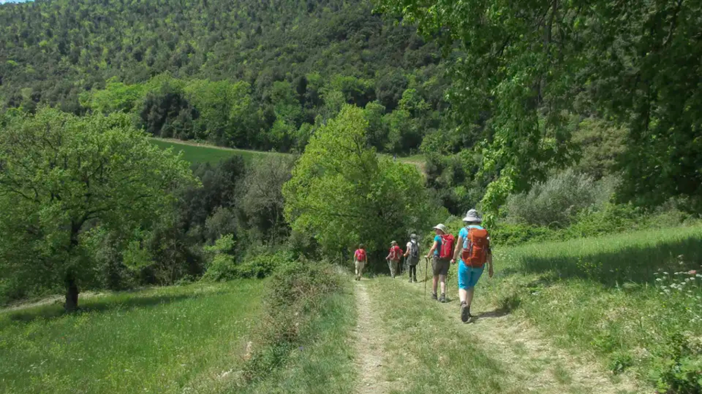 <Nach dem Frühstück schultern wir unsere Rucksäcke und machen uns direkt von der Unterkunft zu unserer ersten Wanderung auf. Unser Rundweg führt uns zunächst über die sanfte und toskanische Hügellandschaft. Wir passieren verlassene Bauernhöfe und kommen an den für San Casciano dei Bagni bekannten Thermalbädern vorbei. Das schwefelhaltige Wasser sprudelt mit einer Durchschnittstemperatur von 40 °C an die Oberfläche und ist besonders reich an wertvollen Mineralsalzen. Weiter geht es für uns über Wiesen und Felder mit Blick auf den mittelalterlichen Teil des Ortes. Unterwegs stoßen wir auf etruskische Ausgrabungen und bestaunen die Überreste aus vergangenen Zeiten. Wer möchte hat am Nachmittag die Möglichkeit die Thermalbäder selbst zu testen. -