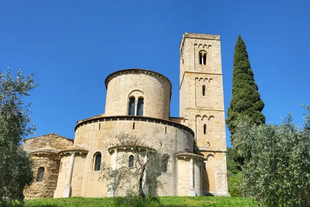 <Nach dem Frühstück fahren wir in den südlichen Teil der toskanischen Provinz Siena und begeben uns in das idyllisch gelegene Val d'Orcia. Seit 2004 gehört das Tal zum Weltkulturerbe der UNESCO und begeistert mit einer Bilderbuchlandschaft aus sanft geschwungenen Hügeln, Pinien und Zypressen. Wir beginnen den Tag mit der Besichtigung der Abtei Sant Antimo, einem Benediktiner Kloster aus dem 8. Jahrhundert. Unsere anschließende Wanderung führt uns von San Quirico über schattenlose Schotterwege vorbei an spektakulären Drehorten des Filmes Gladiator. In Pienza angekommen trinken wir einen Cappuccino in einer der klassisch italienischen Bars, bevor wir die Weiterfahrt nach Montepulciano antreten. Neben der beeindruckenden Piazza Grande mit ihren historischen Palästen, wartet hier auf uns die Verkostung des toskanischen Vino Nobile. Zusätzlich zum Wein genießen wir hier außerdem ein stimmungsvolles, frühes Abendessen mit einer Auswahl verschiedener regionaler Spezialitäten. Später geht es zurück in unsere Unterkunft nach San Casciano dei Bagni. -