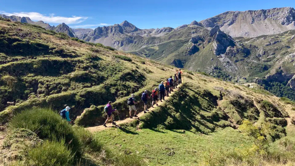 <Heute erkunden wir die malerischen, stufenförmig gelegenen Bergseen des Naturparks und fahren zu unserem Ausgangspunkt an der Grenze zu Kastilien und Léon. Nach einem kurzen Stück erreichen wir bereits den klaren La Cueva-See, eingekesselt zwischen steilen begrünten Felswänden. Wir steigen am Hang weiter hinauf zu den oberhalb auf einer Hochebene gelegenen Seen Cerveiriz und Calabazosa. Über karges Weideland führt uns der Weg nun recht eben Richtung Nachbartal Valle del Lago. Schon bald erstreckt sich das Tal mit seinen schroffen Bergspitzen, den mit Buchenwäldern überzogenen Hängen und breiten Weideflächen unter uns. Ein schmaler Pfad führt uns abwärts zum türkisfarbenen Valle-See am Talende. Ein herrlicher Ort zum Innehalten, bevor wir am gegenüberliegenden Hang wieder leicht aufsteigen und durch das Tal in das gleichnamige Dorf Valle del Lago wandern. -