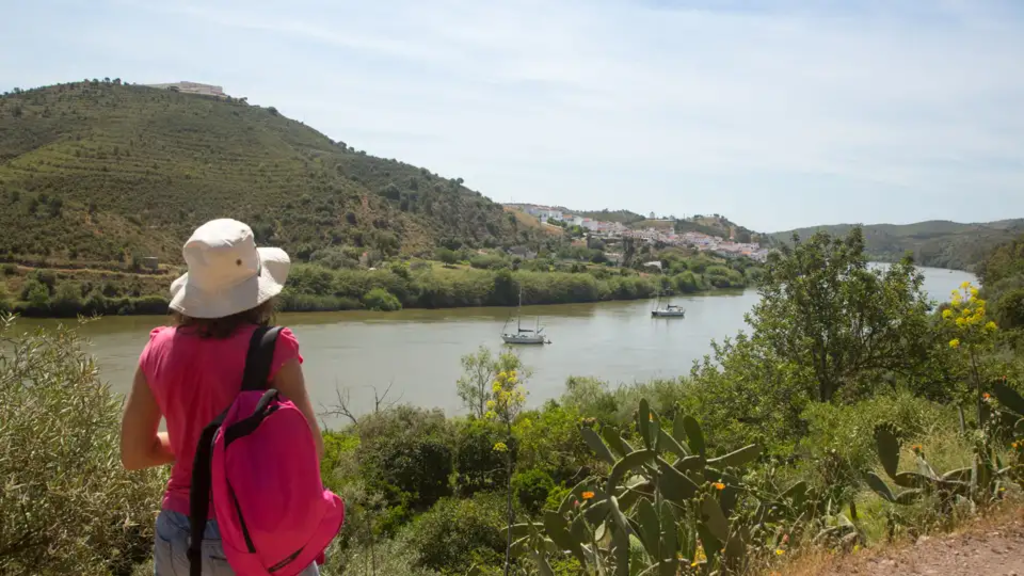 <Wir werden in die Nähe des hübschen Bergdorfs Odeleite gefahren. In leichtem Auf und Ab führt uns unsere erste Wanderung durch die hügeligen Wälder der Terras da Ordem. Grüne Steineichen, Oliven- und Johannisbrotbäume begleiten unseren Weg, der sich entlang der Flüsse Foupana und Odeleite fortsetzt. Die Ufer sind nun zunehmend gesäumt von üppigen Obst- und Gemüsegärten und bieten zahlreichen Vogelarten, darunter auch Graureihern oder Eisvögeln, ein Zuhause. Wir verlassen die Flussläufe wieder und wandern durch den Barranco do Cavalo zurück ins Herz des Waldes. Der Weg schlängelt sich durch Pinienhaine weiter, bis wir schließlich wieder unseren Ausgangspunkt erreichen und zurück nach Alcoutim fahren. Warum ist der Ort so bekannt für sein Kunsthandwerk? Ein Spaziergang durch die engen Gässchen gibt uns Aufschluss. -