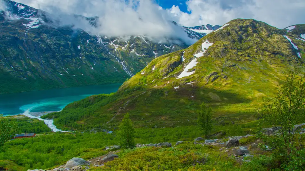 <Wir frühstücken zeitig und laufen wieder zum Busbahnhof. Von dort geht es mit dem öffentlichen Bus Richtung Norden. Je weiter wir fahren, desto näher kommen wir den Bergen, bis wir schließlich gegen Mittag den kleinen Ort Gjendesheim im Jotunheimen Nationalpark erreichen. Malerisch liegt unsere Hütte am Ostufer des Sees Gjende. Am Nachmittag schnüren wir dann unsere Wanderstiefel und steigen auf zum nahegelegenen Bessvatnet. Der kleine Bergsee zählt zu den klarsten Gewässern Nordeuropas, mit einer Unterwassersicht von bis zu 30 Metern. Doch wir bleiben lieber an Land und lassen den Blick über die rauen Gebirgszüge östlich des Jotunheimen schweifen. Anschließend steigen wir über einen kleinen Pfad hinab nach Bessheim und wandern zurück zu unserer Hütte, wo das Abendessen auf uns wartet. -