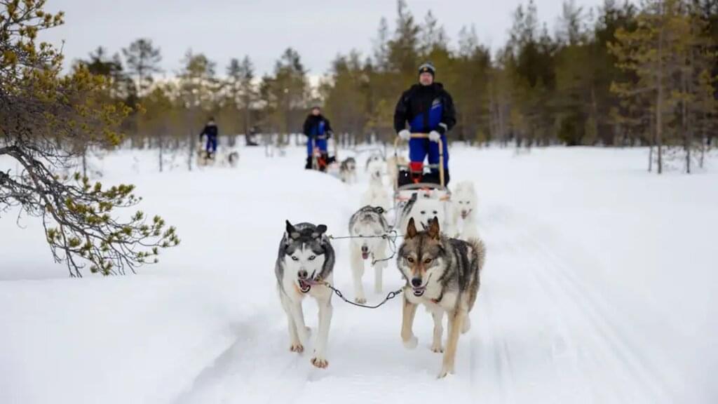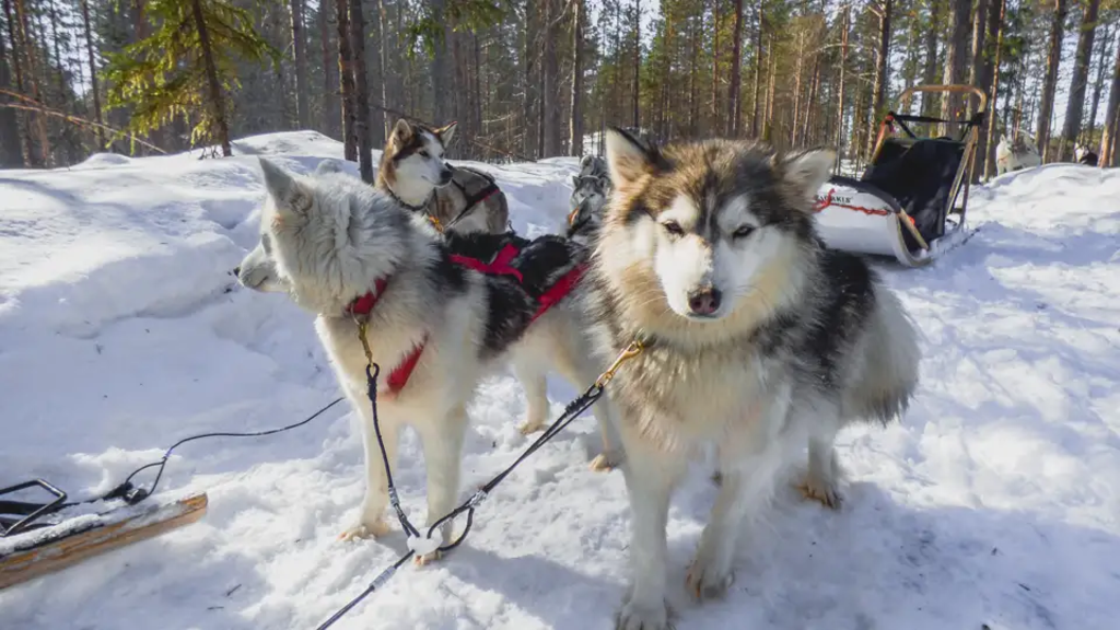 <Heute lernen wir die vierbeinigen Mitbewohner von Saija näher kennen: Ca. 150 Huskys toben auf dem Gelände. Wir machen uns mit den Tieren vertraut, lernen wie ein Schlitten funktioniert und erfahren alle Grundlagen der Fahrtechnik. Dazu gehören auch die Leinen und Geschirre und schließlich das richtige Einspannen der Tiere. Dadurch sind wir gewappnet für unsere erste Tour: Mit einem Gespann von 4 - 6 Huskys erkunden wir die Winterlandschaft (ca. 2 - 3 Std.). Ein herrliches Gefühl! Am Nachmittag kehren wir zurück, entlassen die Tiere in ihre Hütten und nutzen auch selbst den Rest des Tages ganz nach Lust und Laune. Wie wäre es mit einem Saunagang vor dem Abendessen? -