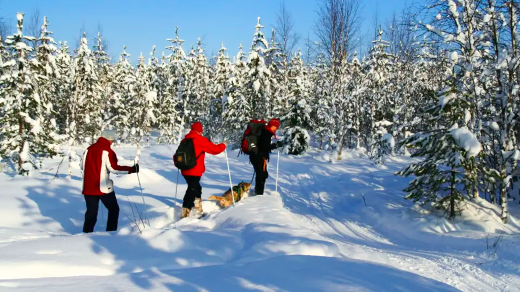 <Gleich nach dem Frühstück erkunden wir gemeinsam die Saija Lodge und ihre Umgebung. Wir erfahren, welche Abenteuer uns in den nächsten Tagen erwarten und was wir alles unternehmen werden. Die Vorfreude steigt! Anschließend beginnen wir mit einer Einführung in den Langlaufsport, schnallen uns die Skier unter die Füße und setzen die gelernten Kenntnisse gleich in die Praxis um. Auf einer Einführungsrunde (ca. 2 - 3 Std.) gleiten wir über den weichen Schnee und lassen uns dabei den Wind um die Nase wehen. Die unberührte Natur von Koillismaa zeigt sich im winterlichen Kleid von ihrer schönsten Seite - vor allem rund um das Ufer des Jokijärvi-Sees. Am Nachmittag besteht die Möglichkeit, auf eigene Faust durch die Winterlandschaft zu ziehen. Auf jeden Fall schürt die frische Luft unseren Appetit und wir treffen uns zum Abendessen wieder im Restaurant. -
