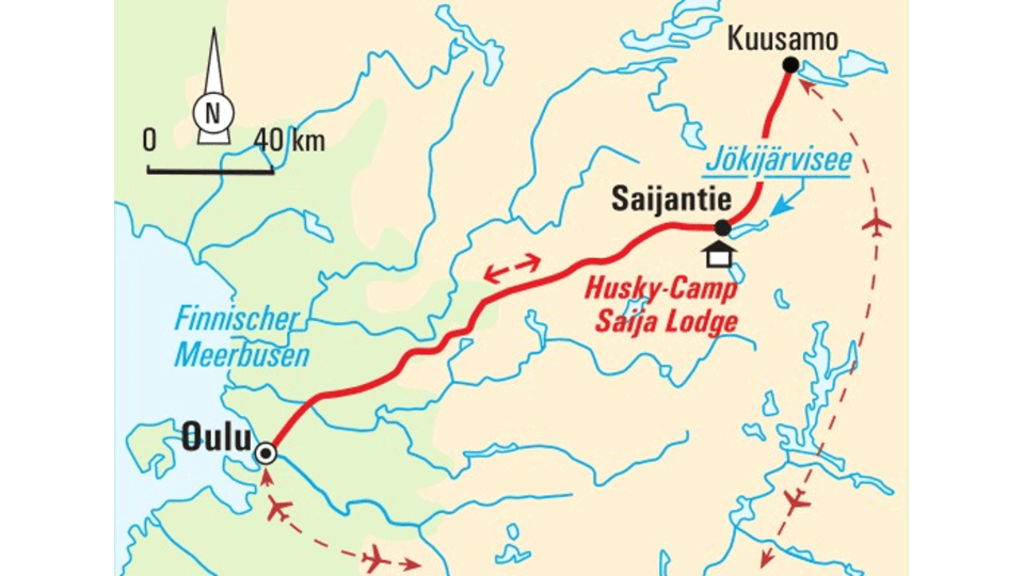 - Lokale, englischsprachige Reiseleitung ab/bis Taivalkoski
