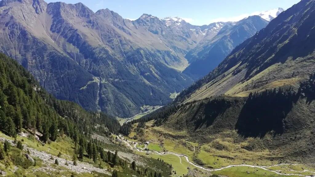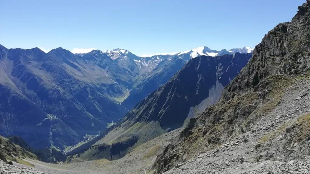 <Mit knapp der Hälfte an Höhenmeter zum Vortag beginnt unser heutiger Tag entspannt auf leichtem Weg talweinwärts. Wir wandern auf den Stubaier Höhenweg, der sich sanft zum Schimmenieder, einem Gebirgspass auf 2.714 m, hochschlängelt. Wir werden begleitet von einem grandiosen Panorama und lassen uns von den Stubaier Gletscherbergen, die eindrucksvoll über dem Tal thronen, begleiten. Ab dem Pass führt uns der Weg stetig bergab. An der eindrucksvollen Neuen Regensburger Hütte machen wir unsere wohlverdiente Mittagspause. Der Blick zurück und das Panorama vor uns versetzen uns in Hochstimmung auf alles, was wir heute und die letzten Tage bereits geschafft haben. Nach der Rast steigen wir weiter hinab in den kleinen Weiler Falbeson, wo unsere Unterkunft für die heutige Nacht liegt. -