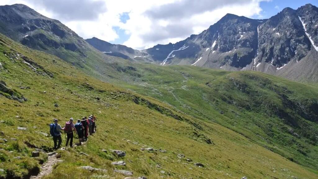 <Mit einem letzten Blick auf den Weißsee wenden wir uns Richtung Süden und befinden uns nun im Nationalpark Hohe Tauern. Nach wenigen Kilometern stehen wir bereits am Gipfel des Kalser Törl (2.515 m) und genießen das herrliche Panorama des umliegenden Gebirgsmassiv der Granatspitz- und Glocknergruppe. Durch wildes Bergsturzgelände, vorbei an alten Almhütten, steigen wir ab, während uns aus dem tief eingeschnittenen Talgrund der Seebach immer wieder entgegen funkelt. Nach einer kurzen Rast am Kalser Tauernhaus fahren wir weiter zum Lucknerhaus und genießen, während unseres Aufstiegs auf dem geomorphologischen Lehrpfad, den beeindruckenden Anblick des Großglockners. Angekommen auf der hoch gelegenen Glorer Hütte lassen wir den Tag entspannt ausklingen. -