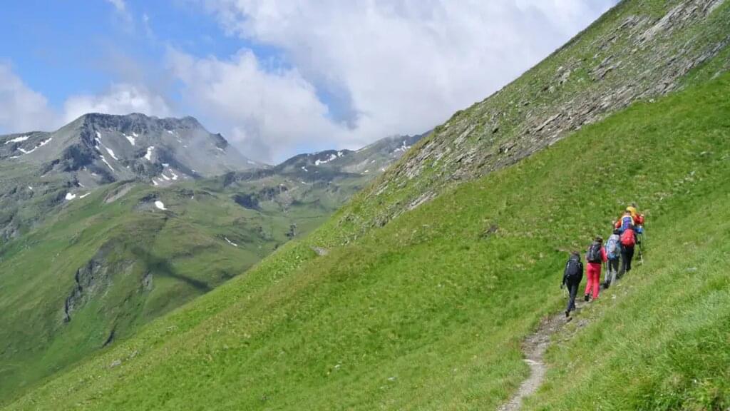 <Unser erster Wanderabschnitt führt uns entlang der Fuscher Ache durch das Käfertal. Gesaümt von Wiesenfeldern wandern wir bis Ferleiten, von wo uns ein Bus nach Fusch an der Großglocknerstraße bringt. Nun haben wir den längsten Anstieg der gesamten Tour vor uns, 1.366 hm sind es bis zur Gleiwitzer Hütte. Durch das Hirzbachtal steigen wir höher und höher und kommen unserer Unterkunft mit jedem Schritt näher. Die prächtige Landschaft um uns und das Rauschen des Hirzbachs sind hierbei unser ständiger Begleiter. -