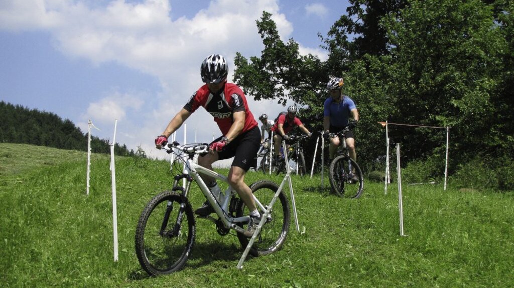 Durch methodische Übungen und einen Fahrtechnikparcours, den wir ganz in der Nähe des Hotels in einem Waldstück errichtet haben, bauen wir die Schwellenangst vor engeren Kurven und schweren Einzelstellen ab. Unter der Anleitung von Profis und völlig stressfrei wird das richtige Verhalten in schwierigen Situationen erlernt. Die Übungen sind dabei dem jeweiligen Können angepasst.