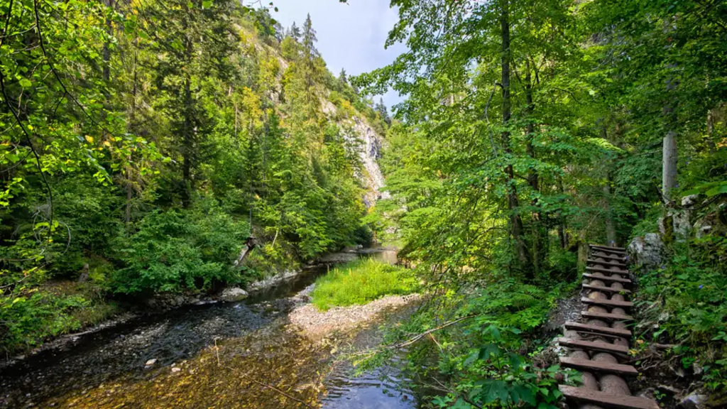 Standort-Wanderreise mit Wanderungen im Nationalpark Hohe Tatra und im Slowakischen ParadiesSteile Felswände bestimmen das Landschaftsbild. Die kargen Spitzen ragen in den Himmel, die grünen Sockel scheinen im klaren Wasser der Bergseen zu zerfließen. Am Ufer wachsen Bäume und Sträucher, die Luft ist klar und frisch. Das Pfeifen der Murmeltiere durchbricht die Stille. Schnell verwandelt sich das sanfte Hügelland wieder in scharfkantige Gipfel, die nur noch eine karge Vegetation vorweisen. Die Hohe Tatra ist ein geheimes Paradies – für Gämse, Luchse und Wölfe, aber auch für Wanderer und Bergsteiger. Wir beziehen unser Quartier am Fuße der Berge und erkunden von dort das "kleinste Hochgebirge der Welt". Wir wandern durch dichten Mischwald, über blühende Bergwiesen und durch den botanischen Garten des Nationalparks, wir überqueren steile Pässe, rasten an rauschenden Wasserfällen und picknicken in urigen Berghütten. Wir erkunden die Mini-Alpen aber nicht nur überirdisch, sondern wagen in der Tropfsteinhöhle Belianska Jaskyna sogar einen Blick in die Erde hinein. Mit etwas tierischem Glück entdecken wir sogar die Spuren von Bären zwischen den Bäumen oder hören das Schnalzen der Auerhähne beim Balzen! Die Tatra ist zwar klein, aber bietet dennoch das gesamte Natur-Repertoire der Alpen auf engstem Raum: Die Wege sind vielseitig, mal ausgewiesen, mal ausgesetzt, auf jeden Fall aber aussichtsreich und mit einer Ruhe versehen, die sonst kaum noch zu finden ist. Und wenn der Hunger ruft, dann stärken wir uns mit Brimsenkäse, Palatschinken und Piroggen – so geht Bergsteigen auf Slowakisch.