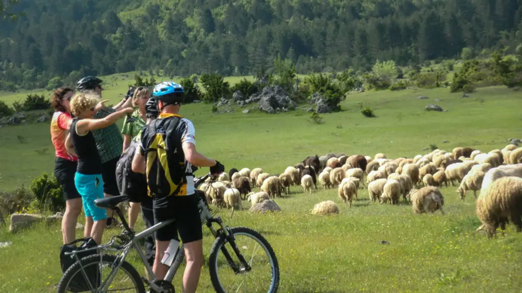 Radreise durch die einsame Bergwelt Albaniens an die RivieraPisten und Serpentinen winden sich entlang der Berghänge. Links und rechts ragen zackige Gipfel auf. Niemand ahnt, dass sich dahinter bereits die herrlichen Sandbuchten der Albanischen Riviera befinden. Hirten weiden ihre Schafe, während wir durch einsame Landstriche von Dorf zu Dorf radeln, je nach Wunsch entweder auf Trekkingrädern oder E-Bikes. Hier leben die Menschen noch in Abgeschiedenheit und alten Traditionen, Gastfreundschaft wird gelebt. Auf ruhigen Nebenstraßen, meist asphaltiert, biken wir von den Gebirgszügen Zentralalbaniens aus, in denen das Fahrrad oft das einzige Transportmittel ist, um entlegene Dörfer zu erreichen. Von der Hauptstadt Tirana führt uns die Route zu drei UNESCO-Weltkulturerbstätten und am Ende aus den Bergen hinaus ans Ionische Meer, zur albanischen Riviera.Der Kontrast zwischen unentdeckten Landstrichen und geschichtsträchtigen und antiken Sehenswürdigkeiten könnte kaum größer sein, es ist eine Reise in jahrtausendealtes Neuland. Unterwegs haben wir Gelegenheit zu freundlichen Begegnungen in den Dörfern, picknicken an ausgewählten Plätzen und erleben die historische Kultur Albaniens. Am Ende jedes erlebnisreichen Tages übernachten wir in typischen Hotels und Gästehäusern und lassen uns die gute traditionelle Küche des Landes schmecken. Unberührte Landschaften, kulturelle Schätze und herzliche Menschen – eine Biketour durch eine der letzten (fast) unberührten Regionen Europas.