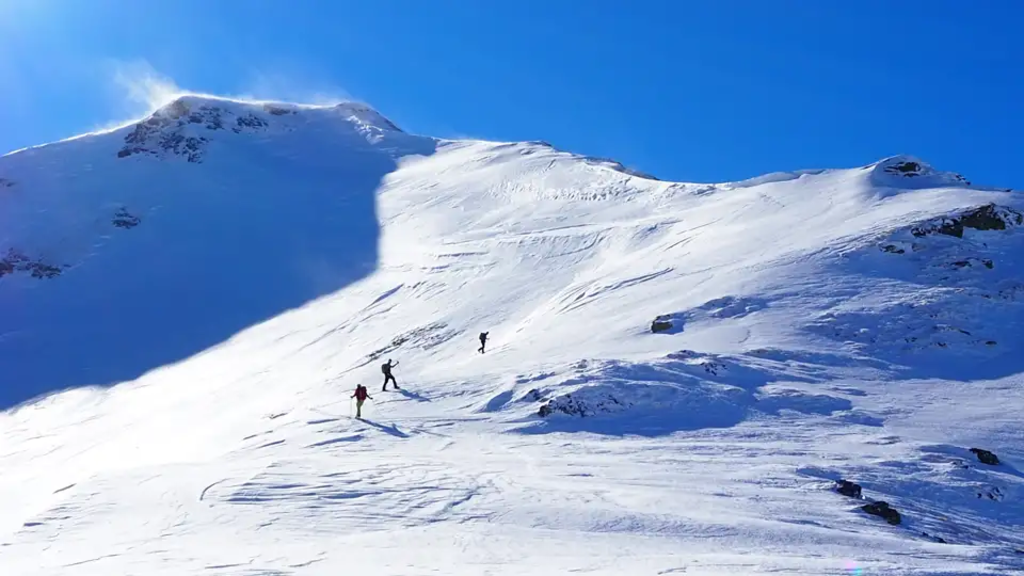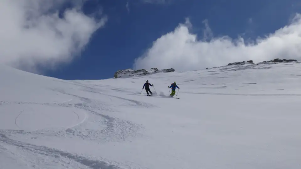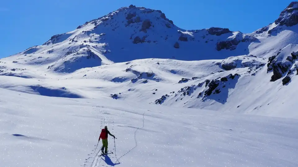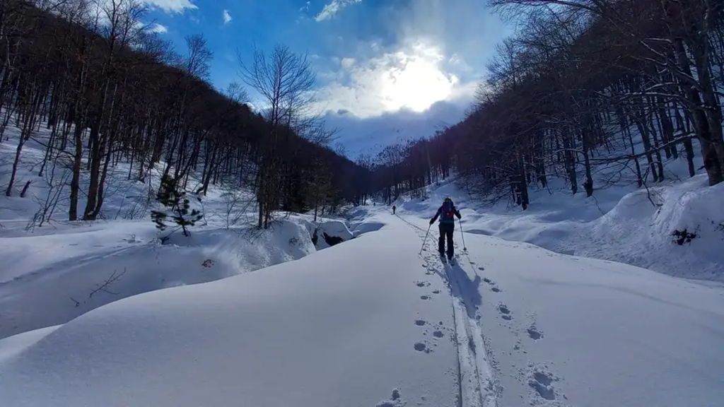 <Je nach Schneeverhältnissen starten wir die Königsetappe unserer Reise zunächst zu Fuß oder sogleich mit Fellen. Eine konditionell anspruchsvolle Tour führt uns durch ein mächtiges Hochtal zwischen den zwei Brüderbergen zu einem letzten Pass und schließlich auf den höchsten Gipfel Albaniens und des Kosovos (2.764 m). Der lange, aber technisch wenig anspruchsvolle Aufstieg wird mit Panoramablicken über Nordmazedoniens und Albaniens Hochländer belohnt. Auf dem Weg zurück ins Dorf werden unsere eigenen Aufstiegsspuren wahrscheinlich die einzigen sein, die wir auf der genussvollen Abfahrt kreuzen. Am Abend erfahren wir von unseren Gastgebern mehr über das Leben unter Diktator Enver Hoxha und das isolierte, kommunistisch geprägte Albanien. Welche Unterschiede und Gemeinsamkeiten gibt es zwischen den Albanern hier und im Kosovo damals und heute? -