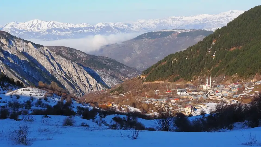 <Flug nach Pristina. Nach der Ankunft am Flughafen treffen wir uns um 12:00 Uhr mit unserem lokalen englischsprachigen Skiführer. Wir reisen einmal durch den Kosovo und überqueren die Grenze nach Albanien. Die Fahrt führt landschaftlich reizvoll durch die Gipfel des Korab-Koritnik Gebirges hindurch zum Dorf Radomire, wo wir übernachten. Beim Abendessen erfahren wir von unserem einheimischen Skiführer mehr über die Reise. -