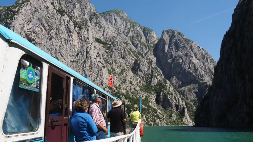 <Heute stehen wir früh auf, denn wir dürfen die Abfahrt der Fähre durch die Drin-Schlucht nicht verpassen. Mit unserem Kleinbus fahren wir ca. 2 Std. zur Anlegestelle in Koman. Die etwa 3-stündige Fahrt über den Koman-Stausee, vorbei an den imposanten Steilwänden der Drin-Schlucht ist genauso spannend wie das turbulente Treiben bei der Be- und Entladung der Fähre an den Haltestellen unterwegs. In Fierza endet die Fahrt und per Bus geht es weiter bis in die Provinzhauptstadt Bajram Curr, wo wir eine Mittagspause machen. Anschließend fahren wir weiter in den Valbona Nationalpark. Nachmittags haben wir Zeit für eine Einstiegswanderung an einem glasklaren Bach entlang und durch einsame Wälder zum See Xhemes. Wer möchte, kann hier ein erfrischendes Bad nehmen, dann wandern wir weiter zu unserer gemütlichen Unterkunft in Valbona. Vom Balkon aus sehen wir schon die gezackten Gipfel der Bjeshket e Namuna, der "verwunschenen Berge" - unser Trekkingziel der nächsten Tage. -