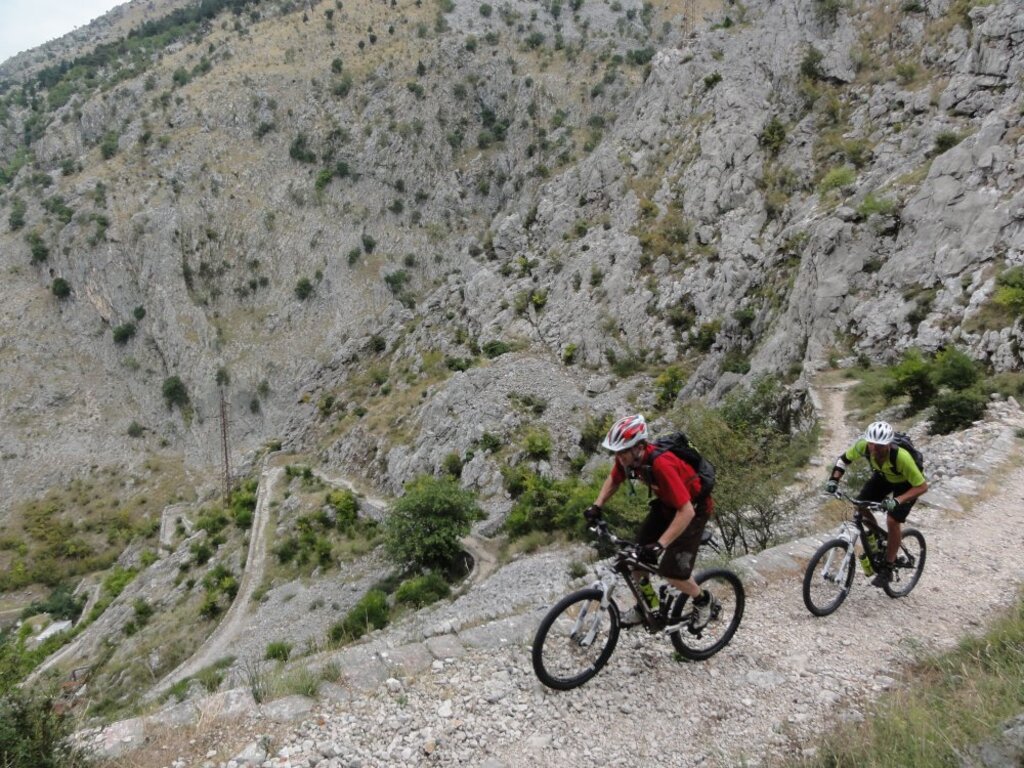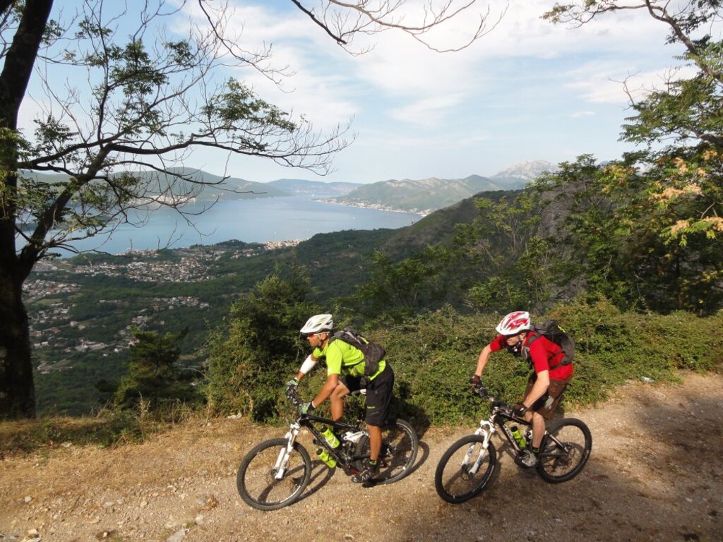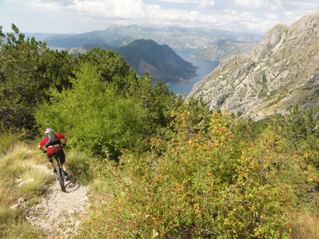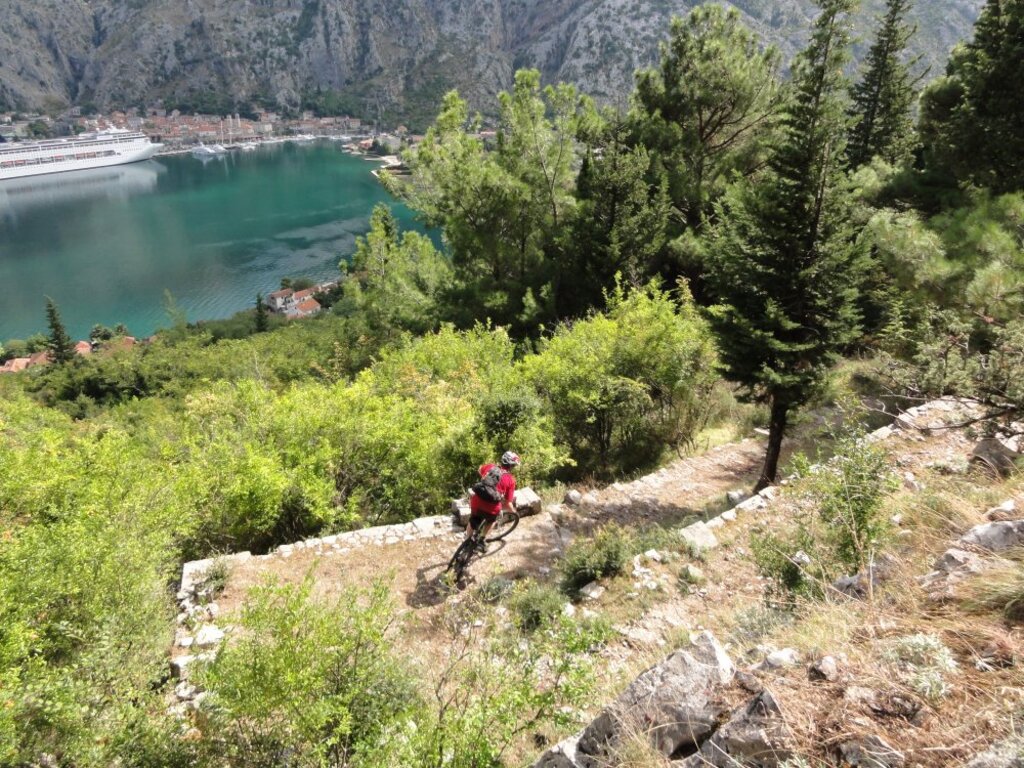 <Heute erleben Sie eine wunderschöne Panoramatour auf den höchsten Punkt der Halbinsel Vrmac. Zuerst biken Sie durch Dörfer direkt am Meer, später auf alten Trassen mit toller Aussicht auf die Buchten von Kotor, Risan und die offene Adria. Ein Highlight ist die Abfahrt über einen alten Weg mit 40 gemauerten Serpentinen mit Blick auf dem Meer und Altstadt von Kotor. Diese Abfahrt ist technisch anspruchsvoll, weil der Weg teilweise abgebrochen ist. Es gibt aber auch eine gemütliche Umfahrungsmöglichkeit, die Sie ebenso direkt zurück in die Bucht von Kotor bringt.