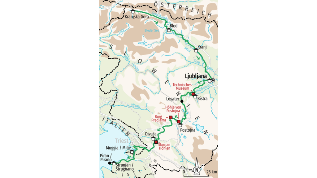 Trekkingradreise von den Bergen bei Kranjska Gora ans Meer nach PiranBiken zwischen Alpen und Mittelmeer! Umgeben von Hügeln und Tiefebenen, Bergriesen und Wäldern, dem Küstenland und der Karstlandschaft sowie entlang der Flüsse und Seen ist Slowenien ein einziges grünes Märchen. Sie biken von den wunderschönen Julischen Alpen zum Triglav Nationalpark mit einem schönsten Seen der Welt, dem Bleder See. Vorbei an traditionellen Dörfern erreichen Sie die entzückende Alpenstadt Kranj und das grüne Ljubljana samt autofreier Altstadt. Unterwegs bestaunen Sie riesige Höhlen, wie die weltberühmte Grotte von Postojna mit ihren Grottenolmen und die UNESCO-geschützte Skocjan-Höhle mit ihrem unterirdischen Flußcanyon und Wasserfällen. Eine sanfte mediterrane Hügellandschaft mit langgezogenen Grasrücken und Weinbergen führt zum Abschluss dem Meer entgegen, direkt hinab in die wunderschönen Küstenstädte Muggia, Strunjan und Piran mit ihrem malerischen mediterranen Altstadtflair. Hier freuen Sie sich nach Ihren Aktivitäten auf ein entspannendes Bad in der Adria. Slowenien strotzt vor Ursprünglichkeit und bietet vielfältiges Terrain mit einer Kombination aus Abenteuer, Gastfreundschaft und Bike-Spaß!