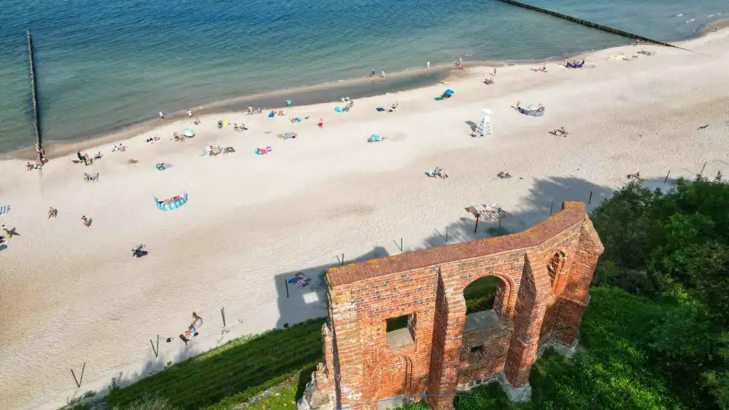 <Die Kathedrale von Kamien Pomorski zählt zu den bedeutendsten des Landes – ein Besuch darf daher nicht fehlen. Wir entdecken die Geheimnisse der spätgotischen Wandgemälde und lauschen dem Orgelspiel eines einheimischen Organisten, der sein Handwerk bereits an die nächste Generation weitergegeben hat. Anschließend fahren wir mit dem Bus nach Trzęsacz (Hoff), einem kleinen Ort an der Ostseeküste, bekannt für die Ruine einer gotischen Kirche. Vor Ort erfahren wir, wie das Meer im Laufe der Jahrhunderte an dem Bau genagt hat. Weiter geht es nach Pogorzelica, wo unsere Küstenwanderung beginnt. Entlang des Strandes wandern wir nach Mrzeżyno (Deep), stets begleitet vom Rauschen der Wellen. Am Ziel wartet bereits unser Bus und bringt uns nach Kołobrzeg (Kolberg), wo wir den Tag mit einem Abendspaziergang entlang der Mole ausklingen lassen. -