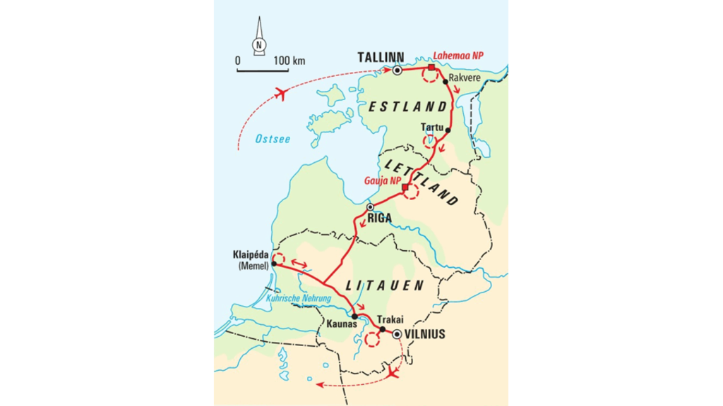 Wanderreise durch die schönsten Regionen von Estland, Lettland und LitauenSonnenstrahlen spitzen zwischen den Tannen hindurch und erhellen langsam den Blick auf den dunkelblauen See. Vögel besingen bei ihrem morgendlichen Konzert den neuen Tag und der Duft des feuchten Grases kitzelt in der Nase, während die Elche durch das Geäst streifen. Das baltische Hochmoor ist weitgehend menschenleer und dadurch wie geschaffen für ausgedehnte Wanderungen und Spaziergänge durch die Natur. Wir erkunden die wilde Ostseeküste, die ruhige Seenlandschaft und die dichten Wälder der drei baltischen Staaten in den beeindruckenden Nationalparks. Dabei ist vor allem die Kurische Nehrung, der schmale Landstrich der das Kurische Haff von der Ostsee trennt, ein ganz besonderer Flecken Erde - in jeder Hinsicht. Wir lassen uns beim Wandern entlang der Dünen den Wind um die Nase wehen und schnuppern dabei den salzigen Duft der Vergangenheit. Aber auch die Gegenwart kommt in baltischen Ländern nicht zu kurz. Wir bewundern prachtvolle Herrensitze in weitläufigen Parkanlagen, staunen über mächtige Ritterburgen und streifen durch idyllische Fischerdörfer. Bei unserer Stippvisite in den Hauptstädten tauchen wir ein in das quirlige Treiben und bestaunen den architektonischen Reichtum verschiedener Epochen. Ein bisschen Mittelalter in Tallinn, eine Prise Jugendstil in Riga und ganz viel Barock in Vilnius - unentdeckt ist das Baltikum vielleicht nicht mehr, aber auf jeden Fall unvergleichlich.