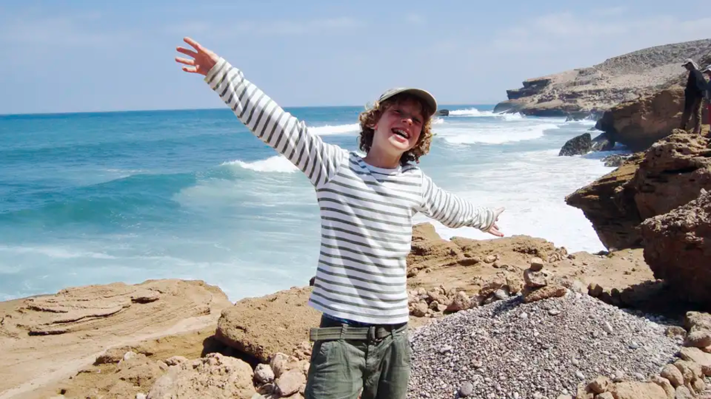 <Nach dem Frühstück fahren wir entlang der Atlantikküste nordwärts. An den Steilfelsen bei Cap Rhir und am Aussichtspunkt auf die Pointe Imessouane legen wir einen Stopp ein. Wir fahren ein Stück weiter nach Zaouit Louda wo wir unsere Begleitmannschaft mit ihren Lastenkamelen treffen. Sollten optional Reitkamele gebucht worden, findet nun eine kleine Einführung ins Kamelreiten statt, insbesondere zum Auf- und Absitzen sowie zum Aufstehen und Hinlegen der Kamele. Ein Treiber betreut und führt im Schnitt 2 bis 3 Tiere. In etwa zwei Stunden wandernd oder reitend, erreichen wir den kleinen Küstenort Timezguida n'Ouftas. Wir gelangen an eine schöne Bucht, wo wir unser erstes Zeltlager auf bauen. Der Rest des Tages dient zum Entspannen und Baden im Meer oder zum Erkunden der Umgebung der Bucht. -