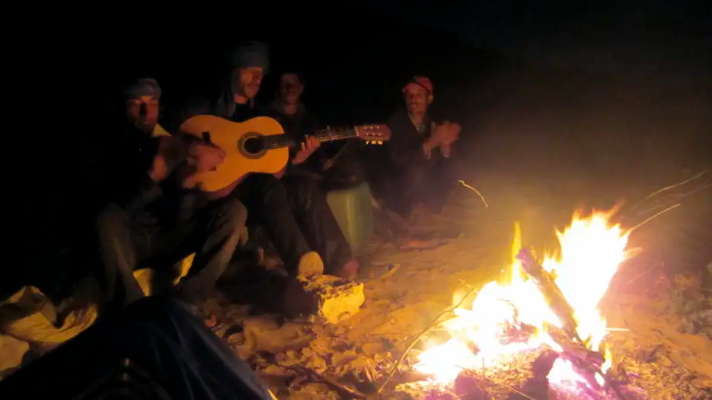 <Jeden Tag brechen wir zeitig auf, um die angenehm kühlen Morgenstunden zu nutzen. Mit den Kamelen umgehen wir das unzugängliche Cap Tafelney und passieren kleine Siedlungen wie Tagant n´bou Dhag. Durch die Landschaft von Taskssout n'Tahra ziehen wir als Karawane durch das Hinterland und Arganwälder wieder bis zur Küste. Nach dem Mittagsimbiss wandern wir bis zum Strand von Ahmed Assay, wo wir die Zelte am Strand errichten. Wir haben Zeit, uns die Zeit mit Kartenspielen zu vertreiben (auch eine Lieblingsbeschäftigung der Kameltreiber) oder uns einfach mit einem Buch zurückzuziehen. -