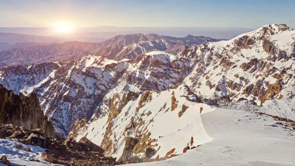 <Früh brechen wir auf und noch bei Dunkelheit beginnt der Aufstieg zu unserem zweiten 4.000er, dem höchsten Berg Nordafrikas. In Serpentinen geht es zu einem Pass. Der Weg ist nicht ausgesetzt, führt aber über Schneefelder, loses Geröll und Blockgestein. Vom Pass aus haben wir unser Ziel vor Augen. Der Weg führt nun weniger steil über einen Sattel bis zum Gipfel des Jebel Toubkal. Während der Gipfelrast bietet sich uns ein Panoramablick hinab in die südmarokkanische Wüstenebene und auf die Bergkämme um uns herum. Nach dem Abstieg zurück zur Neltner-Hütte, erwartet uns unser Koch mit einem kräftigenden Essen. -