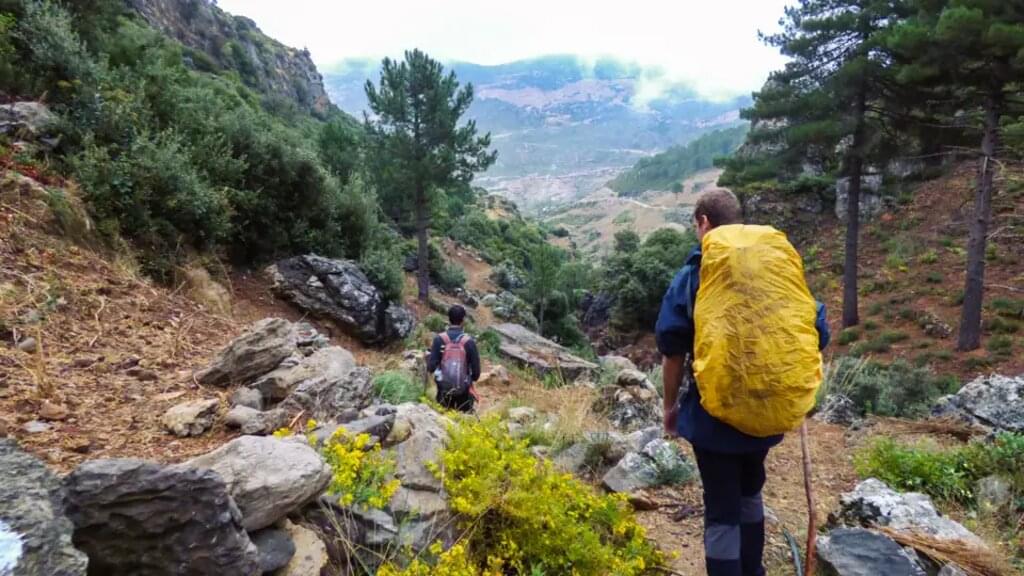 <Heute ist der vielleicht anstrengendste Tag unseres Trekkings. Wir besteigen den zweithöchsten Berg der Provinz, Jebel Tissouka (1.800 m). Es geht steil hinauf, zuerst durch Dörfer und dann entlang bewirtschafteter Felder. Oben angekommen, lassen wir uns unser Lunchpaket schmecken. Von der kargen, mediterranen Vegetation auf der Südseite kommen wir auf der Nordseite der Bergkette durch eine viel feuchter und nordisch anmutende Vegetation. Endemische marokkanische Tannen, Farne und Moose wachsen hier. Vielleicht sehen wir Berberaffen umherspringen. Wir steigen nach Afaska ab und beziehen dort unser einfaches Gästehaus. Am Abend wird traditionelles Essen der Region serviert. -