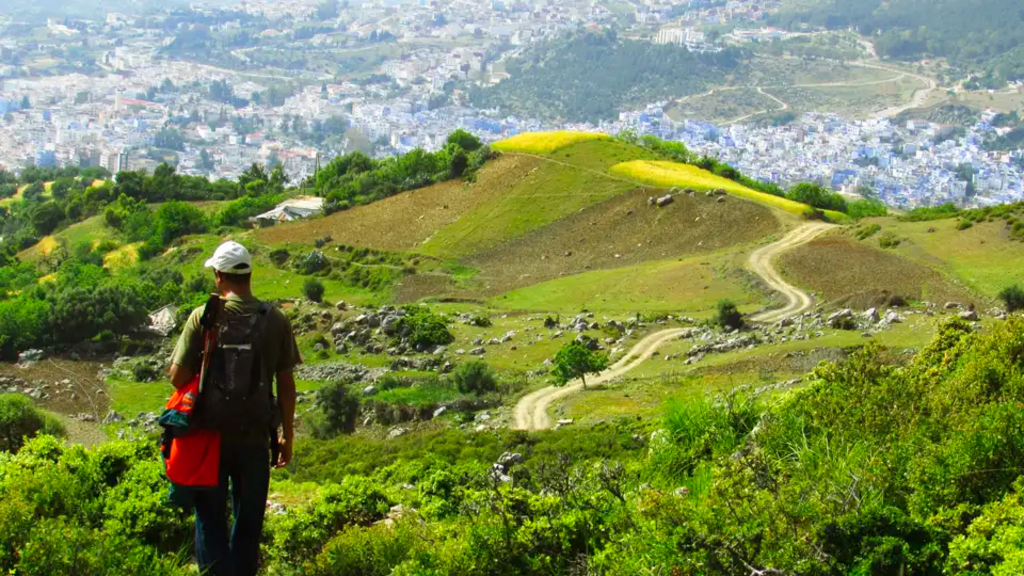 <Wir wandern direkt von unserer Unterkunft in Chefchaouen los, zuerst durch das gerade erwachende Städtchen, dann am Fluss und Waschplatz "Ras el Ma" vorbei und hinauf zur Bouzâafar Moschee, von der man einen schönen Blick auf die blaue Stadt hat. Wir wandern entlang bewirtschafteter Felder auf und ab, treffen auf Schafherden und genießen den Blick auf die umliegende Bergwelt. Um die Mittagszeit erreichen wir unser erstes Etappenziel und freuen uns auf ein stärkendes Mittagessen. Wer möchte, kann am Nachmittag noch durch das Dorf spazieren und Einblicke in den Alltag der hier lebenden Menschen gewinnen. -