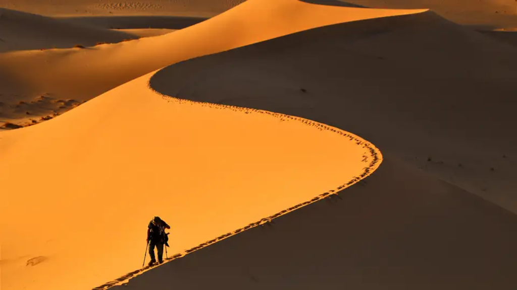 Trekkingreise entlang des Tassilli n'Ajjer Plateaus zu den Dünen des Erg AdmerDie Zentralsahara ist jenes Paradies, in dem Zeitlosigkeit in unseren Seelen entsteht. Wir lassen einfach los und überlassen uns dem Rhythmus der Wüste. Das Licht- und Farbenspiel am Himmel und auf bizarren Felsformationen, die im Sonnenuntergang tiefrot erstrahlen, wird jeden Tag neu komponiert. Wir erleben die Stille der Wüste und staunen über ihre Vielfalt, über die von Wind, Sand und Zeit geformten Felsbögen. Unser Weg führt entlang des Tassilli n'Ajjer Plateaus durch eng eingeschnittene Canyons und weite Ebenen bis hin zu den riesigen Sanddünen des Erg Admer. In kleinen Höhlen, den sogenannten Abris, finden wir kunstvolle Felsmalereien, die uns das einstige Leben hier näher bringen. Unsere Begleiter, die Tuareg, brauchen keinen Kompass, der Stand der Sonne und die Landschaft weisen den Weg. Die vielfältigen Wüstenlandschaften, die stolzen Nomaden, das tiefe Gefühl der Naturverbundenheit, der Klang der Stille und dieses Freiheitsgefühl, wenn unser Blick in die Weite der Wüste schweift... Die Sahara öffnet unweigerlich unsere Herzen, damit sie darin für immer einen Platz innehat.