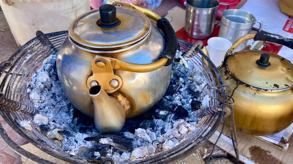 <Der Vormittag kann nur zu Fuß zurückgelegt werden, unser Weg führt durch teils schmale Felsentäler, die für die Kamele nicht zugänglich sind. Am Mittagsrastplatz treffen wir unsere Begleittiere wieder. Nachmittags stehen immer wieder Tamarisken und Akazien abseits unseres Weges bis wir unser Nachtlager erreichen und bei einer Tasse Tee zusammen sitzen. -