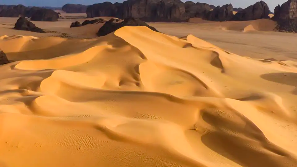 <Flug über Algier in die Oasenstadt Djanet, dem Hauptort des berühmten Tassili N´Ajjer-Nationalparks. Nach dem Einreiseprozedere fahren wir zu unserem heutigen Nachtlager, wo unsere Zelte bereits errichtet sind. -